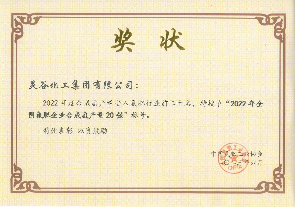 2022年度全国氮肥企业合成氨产量20强