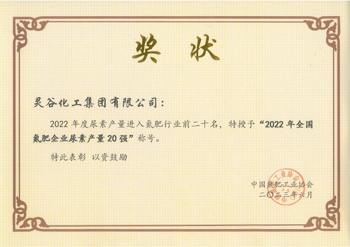 2022年度全国氮肥企业尿素产量20强