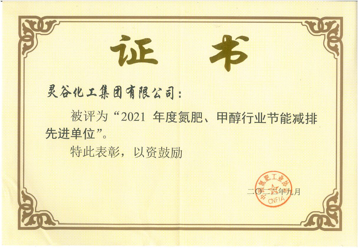 “2021年度氮肥、甲醇行业节能减排先进单位”