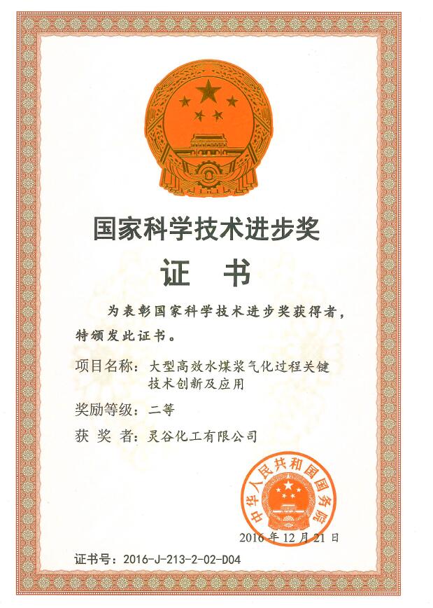 水煤浆气化过程关键技术创新及应用”项目荣获得“