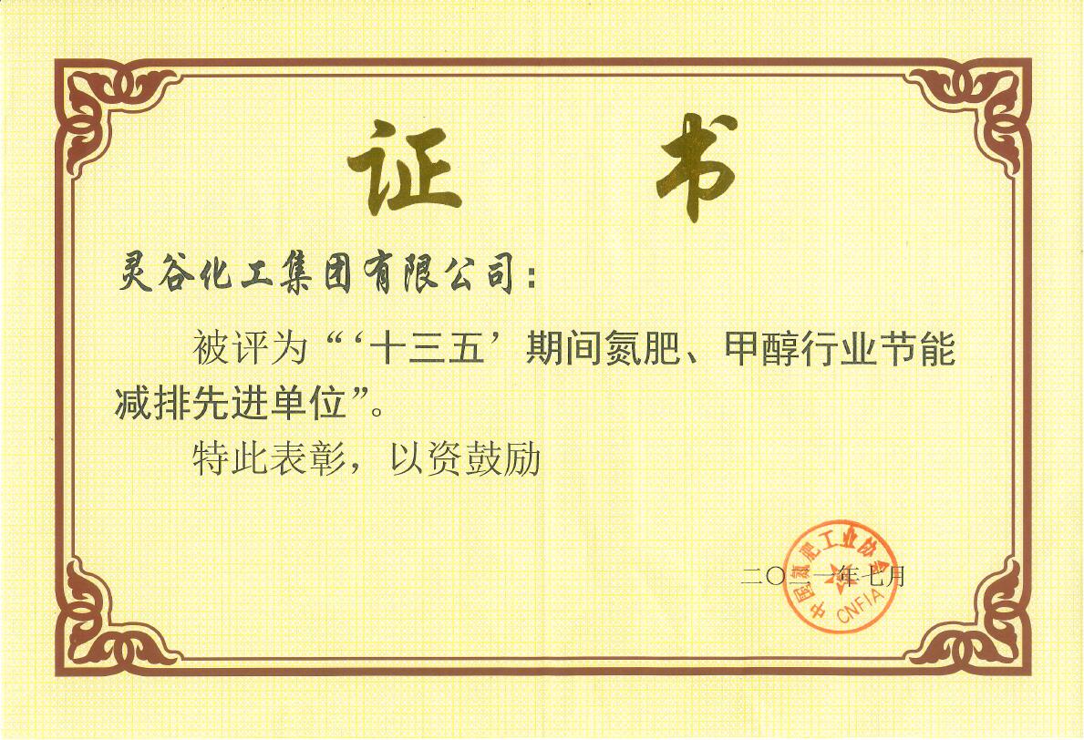 “2021年度氮肥、甲醇行业节能减排先进单位”